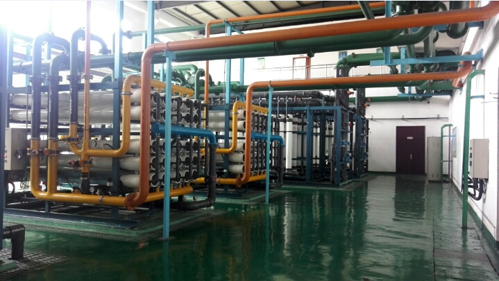 内蒙古某煤化工焦化水处理中心采用国内领先的双膜法工艺,废水处理分为两个标段,一标段设计处理量为200t/h,进水主要为生化站处理后的废水,二标段设计处理量为300t/h,进水主要为一、二期清静下水、甲醇循环水排污水等。一、二标段废水经过预处理工序,主要是通过投加絮凝剂进一步降低水中的悬浮物、出水经自清洗过滤器进入超滤系统、自清洗过滤器采用以色列产阿速德品牌产品,可采用定时或压差变化自动对过滤器进行清洗,同时不影响产水。超滤膜组采用陶氏PVDF合金膜,单皮层膜丝结构,更具持久亲水性,比同类产品具有更大的产水量。此外,PVDF合金膜具有较强的化学药品耐受性,可高效在线化学清洗,及时恢复膜通量,延长膜的使用性能。